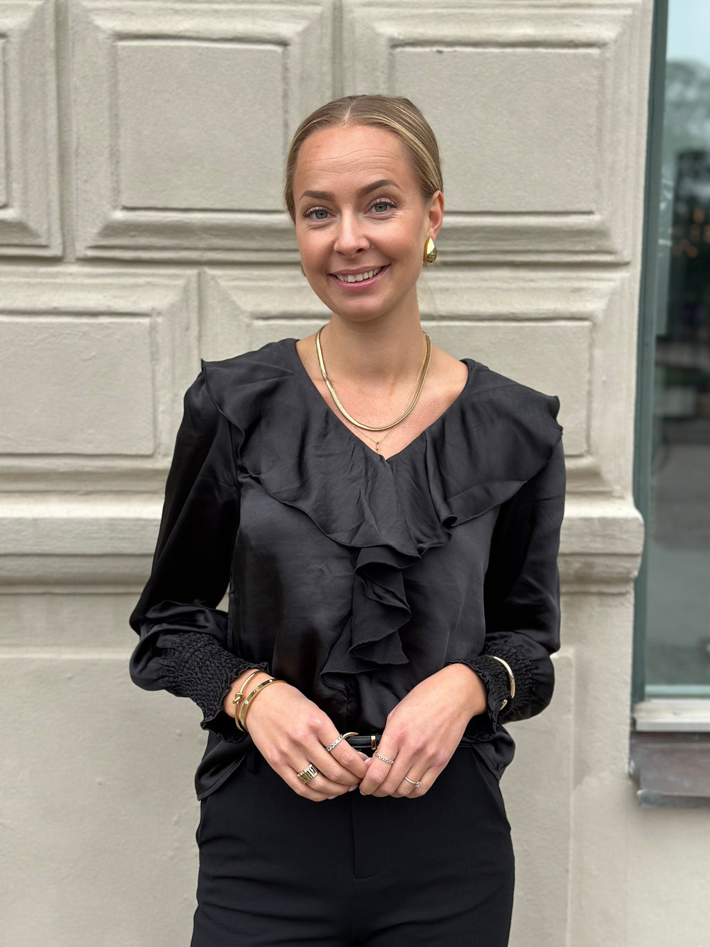 VEROMODA - BRA LS V-NECK FRILL BLOUSE - BLACK