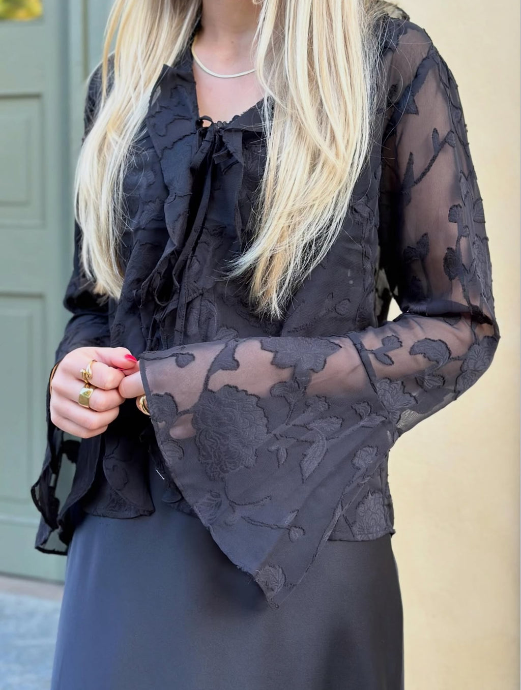 VEROMODA - BRA LS V-NECK FRILL BLOUSE - BLACK