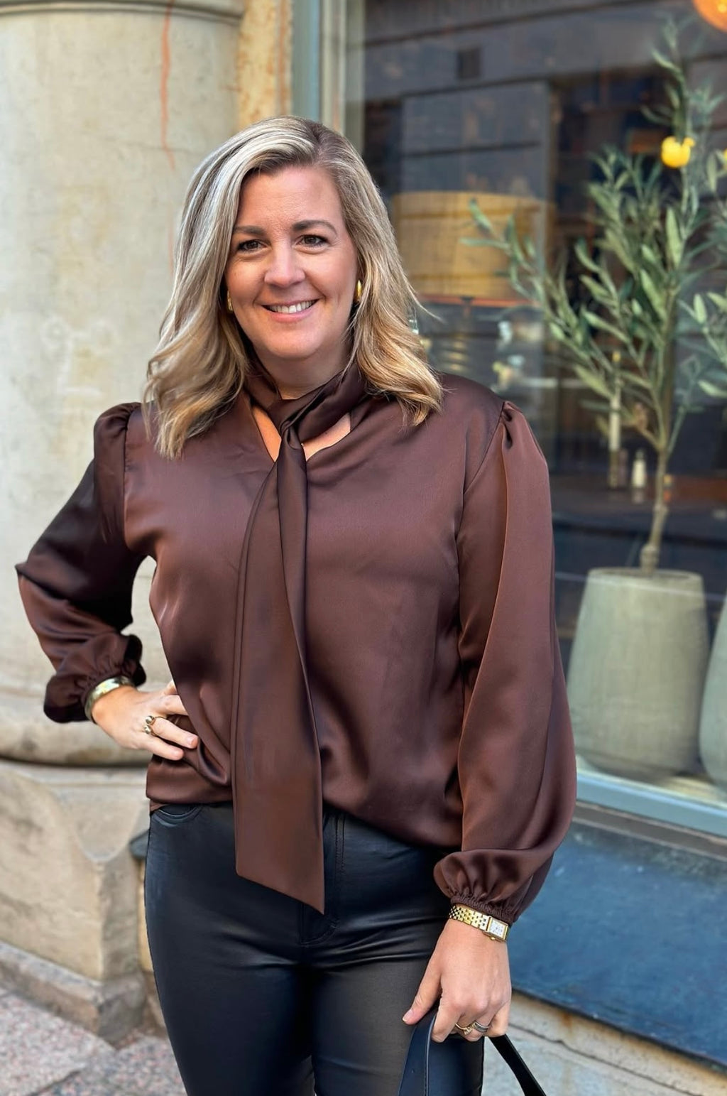 COSY HOUSE - GLANSIG BLUS MED SJAL- BRUN
