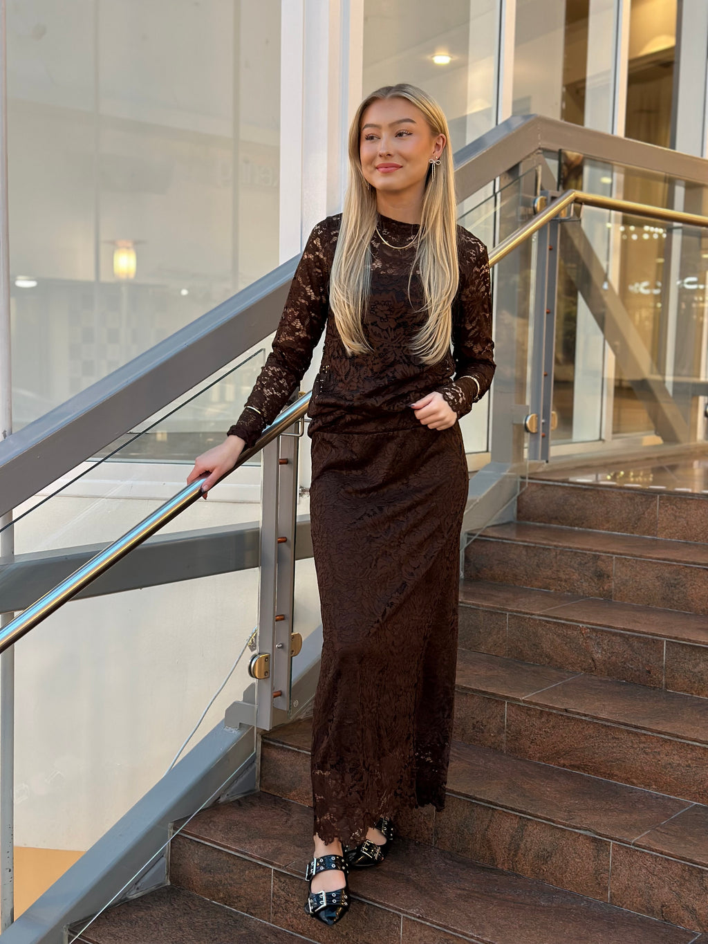 JDY - CATHY SEQUINS LONG SKIRT - FUDGE