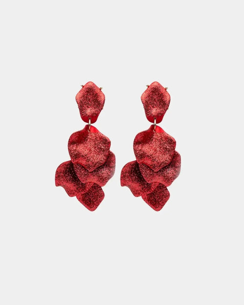 BOW19DETAILS - LEAF EARRINGS GLITTER - RED