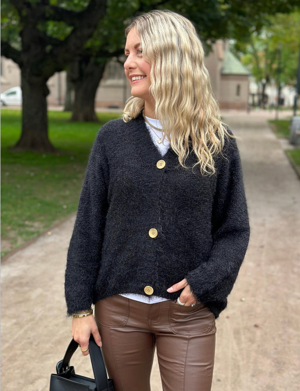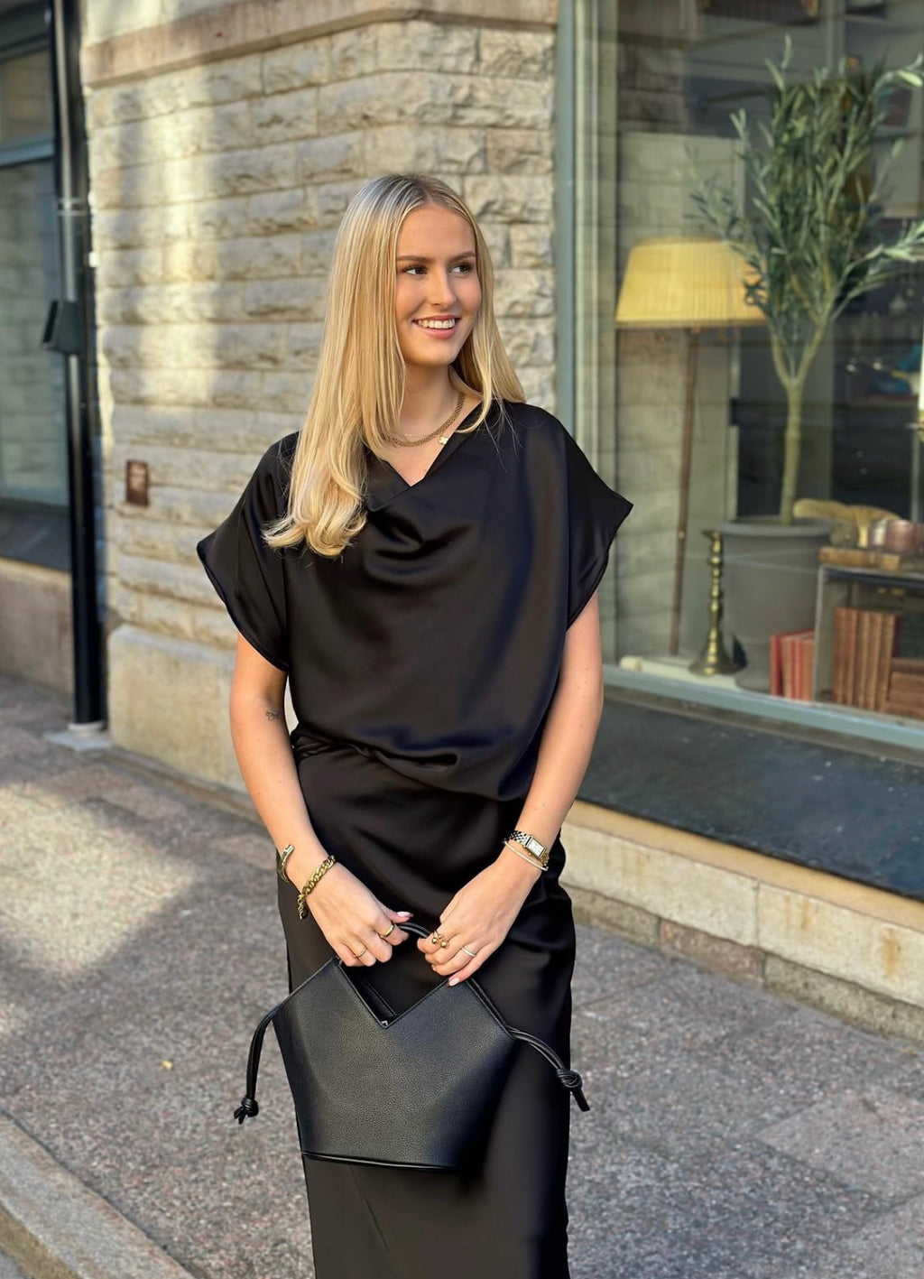 COSY HOUSE - GLANSIG BLUS KORT ÄRM - SVART