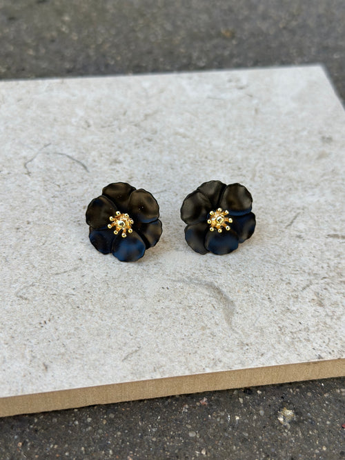 BOW19DETAILS - FLOWER SMALL EARRINGS PEARL - BLACK