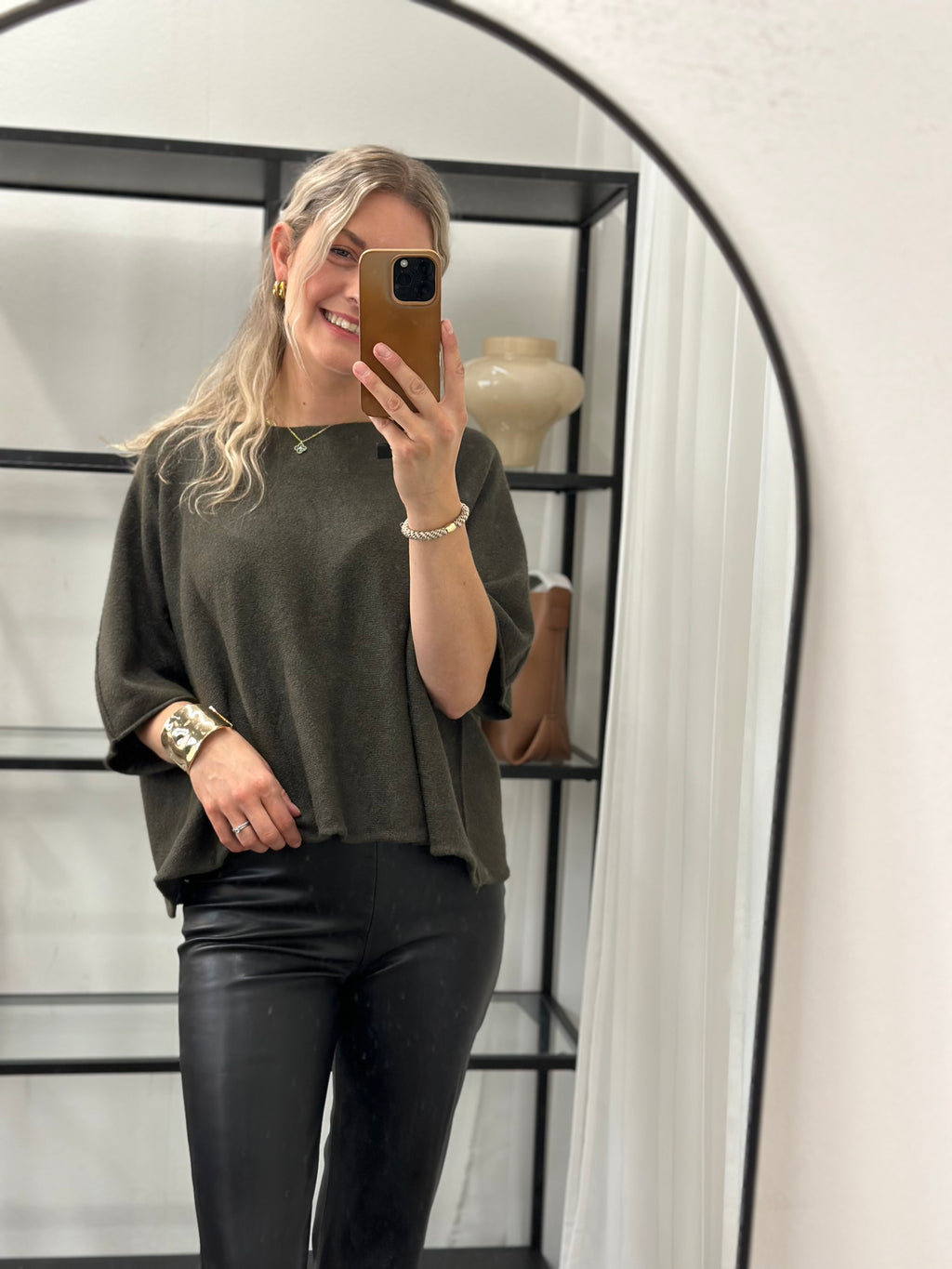 COSY HOUSE - KORTÄRMAD STICKAD TRÖJA - MOSSGRÖN