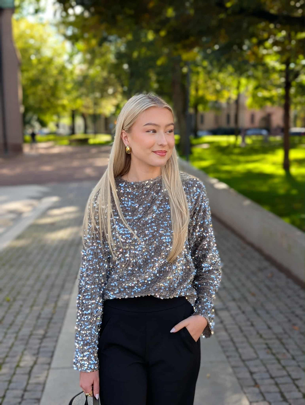 PIECES - KAP LS DEEP BACK BOW TOP - MOREL/SILVER SEQ