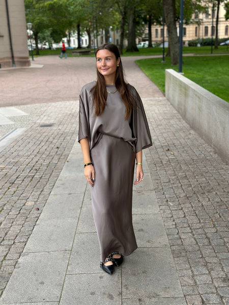 En helt magisk blus ifrån Cosyhouse. I ett mjukt, skönt och luftigt material. Faller fint med 2/3 ärmar. Finns en matchande kjol till.