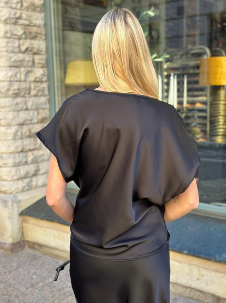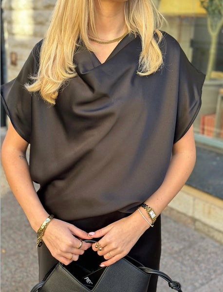 COSY HOUSE - GLANSIG BLUS KORT ÄRM - SVART