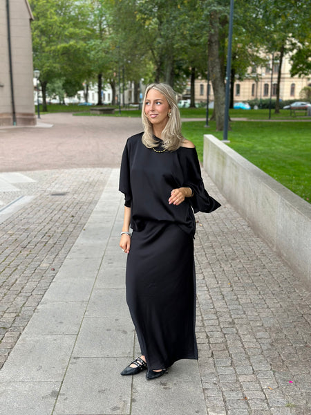 En magisk långkjol ifrån Cosyhouse. I ett mjukt och skönt material. Faller fint, är lite klockformad i modellen. Finns en matchande blus till. Normal i storleken. Alice bär storlek S/M.