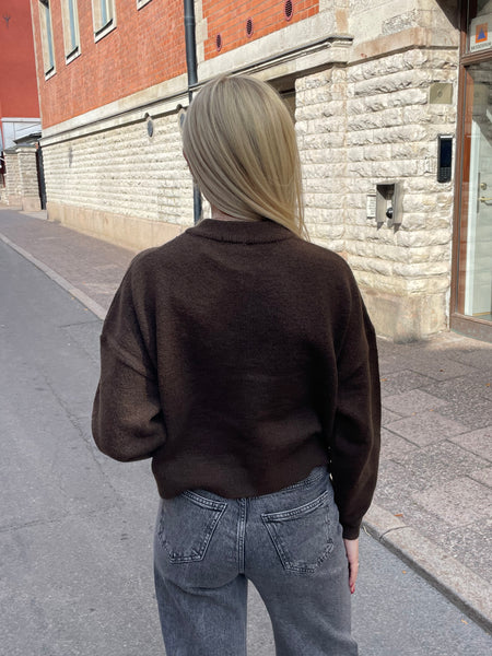 En helt fantastisk stickad cardigan från JDY. I en brun stickad färg med detaljerade guldknappar framtill. Ribbat vid ärmkanten samt slutet av tröjan. Normal i storlek. Ella bär storlek S.