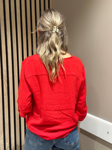 Härlig bastopp med v-ringning från JDY. Lös passform och 3/4 ärm. Normal i storleken. Paulin bär storlek 38.