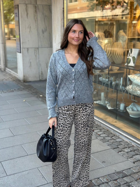 En magisk stickad cardigan ifrån JDY. Med en helt magisk stickning i ett rutmönster ger det tröjan något extra. Har den knäppt eller uppknäppt. har en liten volangkant vid ärmslutet samt en V-ringning framtill. Normal i storlek. Julia bär storlek S.
