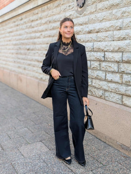 En helt magisk top ifrån JDY. Med en helt magisk spets upptill ger det toppen mycket elegans. Style till flera olika tillfällen. Normal i storlek. Julia bär storlek S.