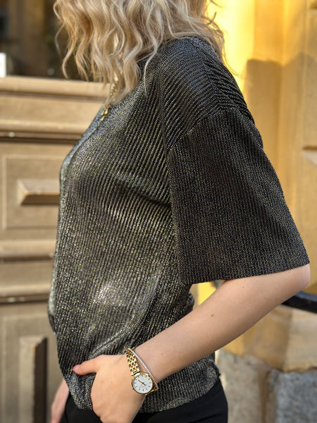 JDY - VILMA S/S O NECK TOP - BLACK/SILVER