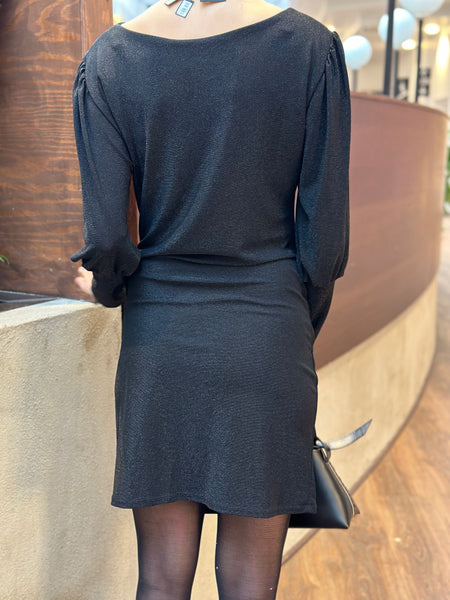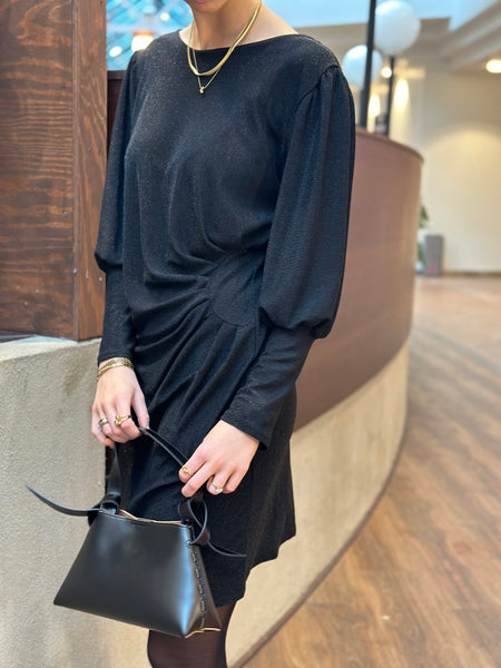 En så fin glittrig klänning ifrån Jörlevik. Har lite ballongformad ärm samt en markerad midja. Kommer i flera färger.