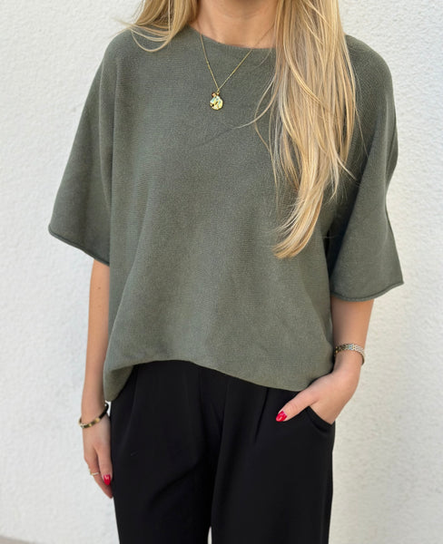 En magisk stickad tröja ifrån Marta. Rund hals, kortare ärm. Bär som den är eller över linne/skjorta.
