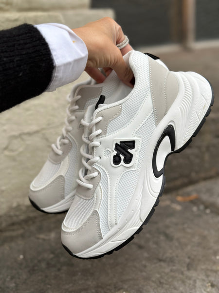 Helt otroliga sneakers ifrån Marta. Lite högre sula i en vit nyans med ljus beiga och svarta detaljer. Lite små i storlek så gå gärna upp en storlek.