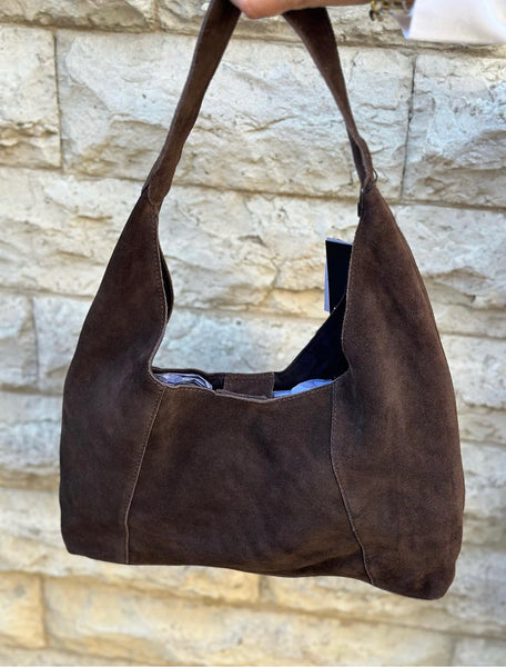 En brun magisk mockaväska i 100% läder. Har ett stort fack med ett knäppe.