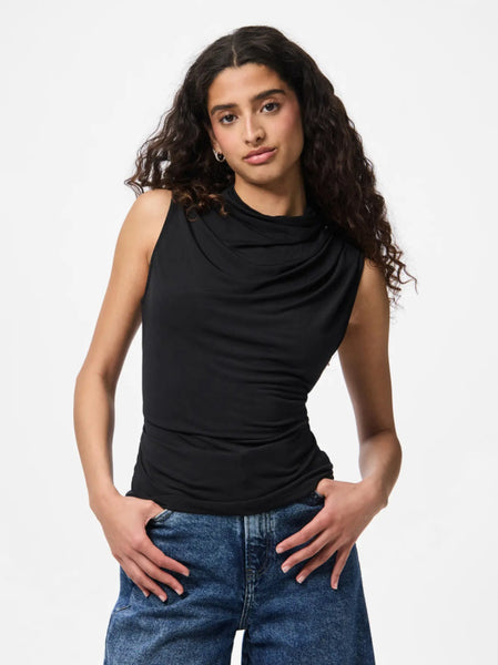 En magisk topp som passar till alla olika outfits. Styla upp eller ner den enkelt. Med drapering framtill och en längre hals. Lite liten i storleken.