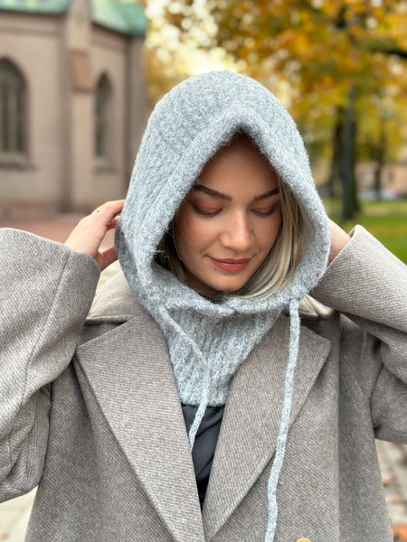 WOW! Denna är så snygg! Mys ner dig i denna otroliga balaclava som är i en så skon stickning. Ha den själv som den är eller under en luva. Är normal i storleken.