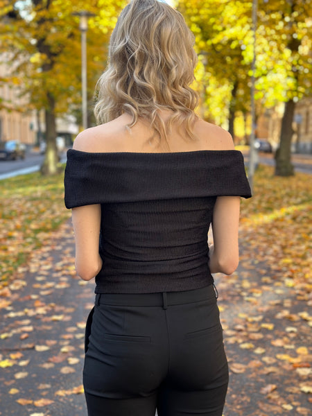 En magisk topp med kors framtill. Är off shoulder och i ett ribbat material. Så fin att styla upp men även klä ner med ett par jeans mm. Normal i storlek. Alice bär storlek S.