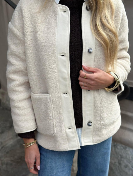 En så himla härlig jacka från Soaked. Med en U-ringning som ger jackan lite mer elegans. Har knappar längst mitten samt två fickor på framsidan av jacka.