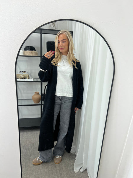 En så fin lång kofta ifrån Veromoda. Har vidare ärmar och uppvikt ärmkant. Styla den som den är eller tillsammans med ett skärp. Normal i stoleken. Telma bär storlek S.