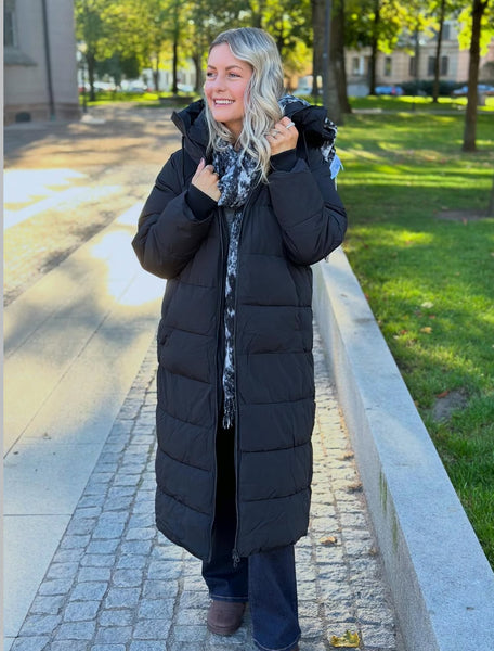 Den perfekta långkappan när det är kallt ute. Den är längre i modellen och har en dragkedja nedtill för bättre rörlighet. Har en luva som kan spännas åt samt fickor på sidorna. Normal i storleken. Paulin bär storlek S.