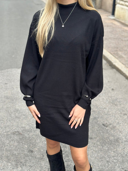 En helt magisk klänning i mjukt och skönt material. En lite högre hals samt tajtare ribbning vid ärmkanten som ger ärmarna lite form. Kortare i modellen och rak. Normal i storlek. Amanda bär storlek S och är 178cm lång.