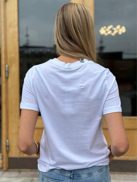 Ett perfekt plagg att ha i garderoben. Piffa upp dina outfits med denna t-shirt med strasstenar på framsidan. Normal i storlek. Amanda bär storlek XS.